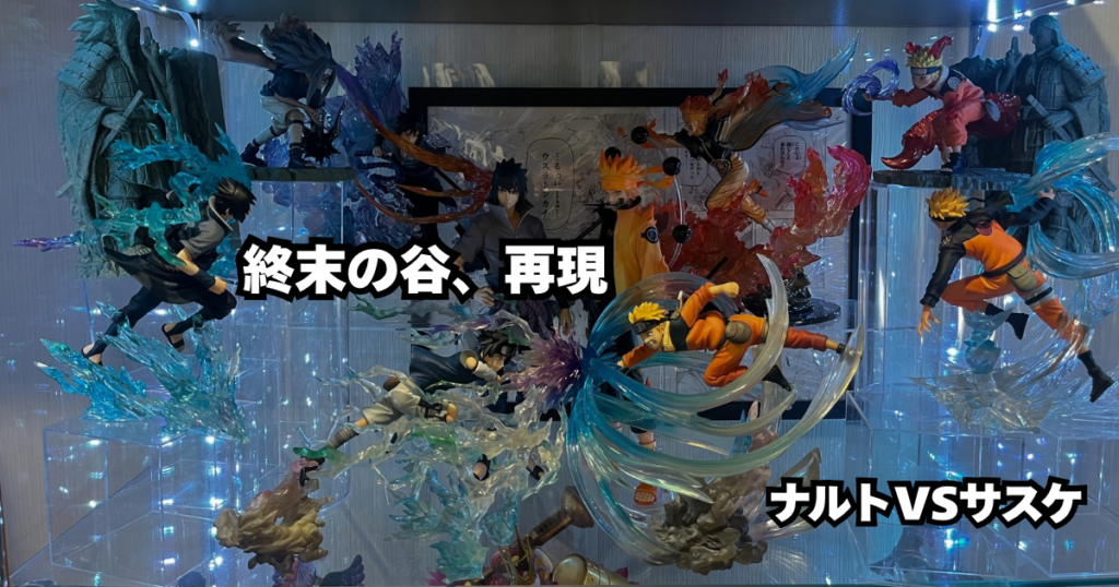 NARUTOの終末の谷をフィギュアで再現。ナルトとサスケの最終決戦を複数フィギュアで表現したディスプレイ実例と飾り方を解説。